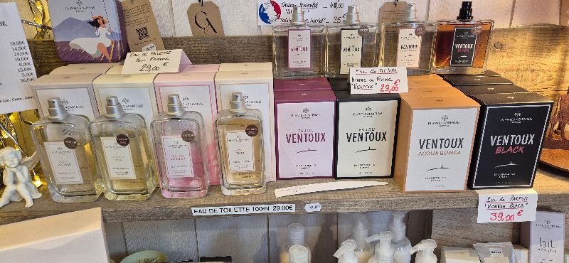 Vous trouverez aussi une large gamme de produits pour le corps fabriqués artisanalement au lait d’ânesse, ainsi qu'une gamme d'eau de toilette pour femme et pour homme.