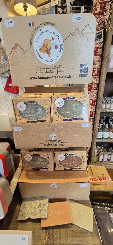 Les savons sont fabriqués artisanalement à base de produits naturels et d'huiles essentielles naturelles.