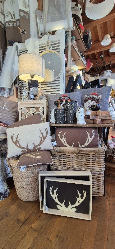 Objets de décorations, luminaires ,tabourets, cadres photos , vaisselle , tableaux , linge de lit, coussins , plaids .... de nombreuses pièces qui signeront la touche finale de votre maison et chalet .